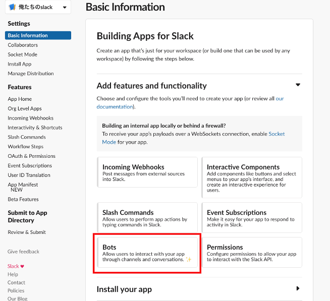 同じく基本設定画面(Basic Information)でInstall to Workspaceをクリック