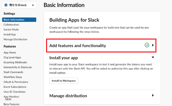 Add features and functionalityがオッケーっぽくなってたらオッケー