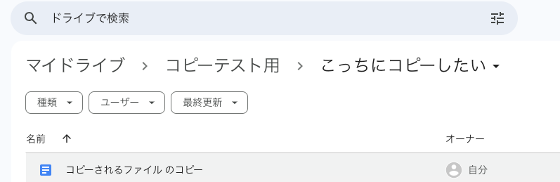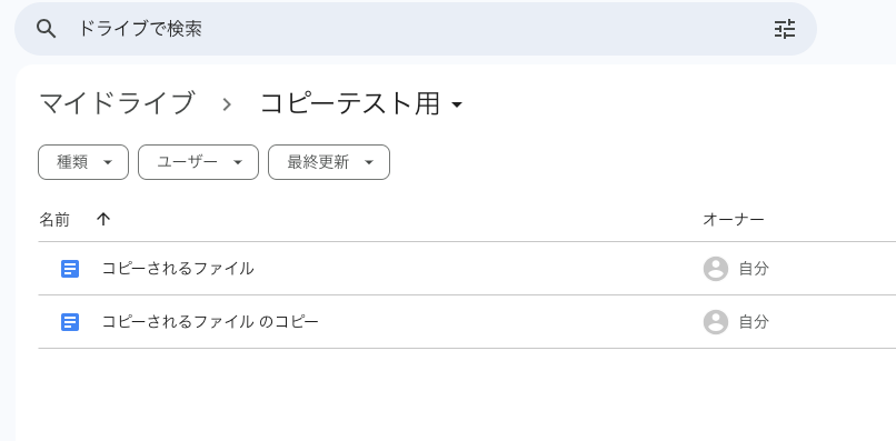 GoogleドライブのファイルをコピーするにはファイルオブジェクトのmakeCopyメソッドを使います。