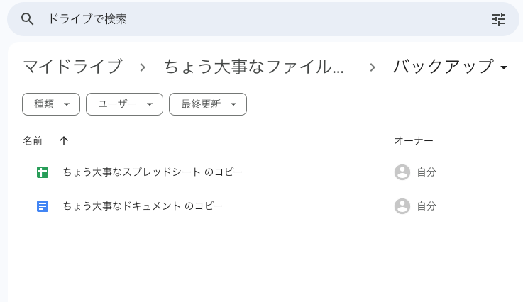 ちょう大事なファイルのコピーをとる