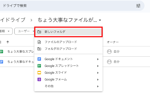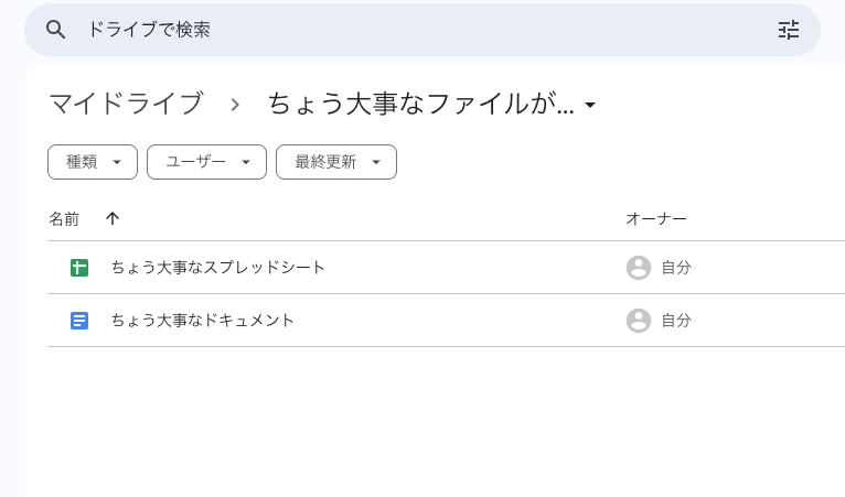 あるフォルダに大事なドキュメントとスプレッドシートが入っているとします。