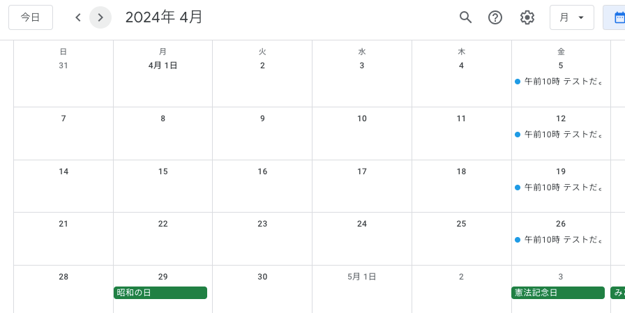 つまり、繰り返しルールを毎週金曜日にしていたとしても、最初の予定が土曜日であれば、最初の予定のみ土曜日になります。