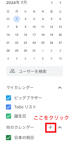 他のカレンダーの「+」とクリック