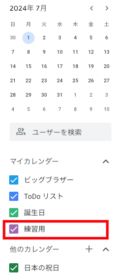 「練習用」カレンダーが追加される