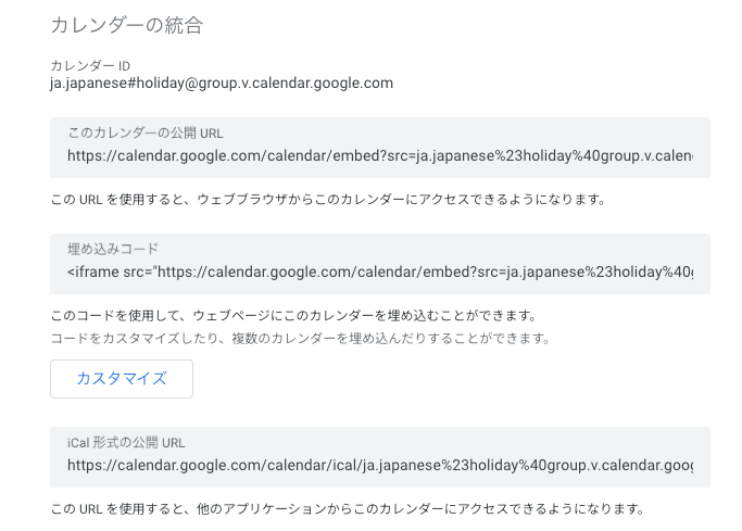 祝日のカレンダーもカレンダーIDから取得します。